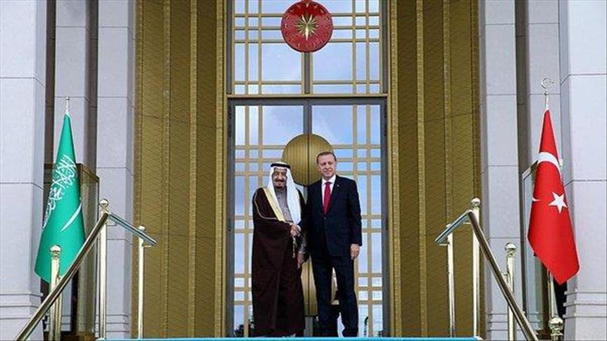 استقبل فخامة الرئيس رجب طيب أردوغان رئيس جمهورية تركيا في القصر الرئاسي بأنقرة اليوم، أخاه خادم الحرمين الشريفين الملك سلمان بن عبدالعزيز آل سعود.وقد أجريت لخادم الحرمين الشريفين مراسم استقبال رسمية حيث عزف السلامان الوطنيان للمملكة العربية السعودية وجمهورية تركيا. ثم أطلقت المدفعية 21 طلقة ترحيباً بقدوم خادم الحرمين الشريفين. بعد ذلك استعرض حرس الشرف، ثم حيا خادم الحرمين الشريفين حرس الشرف.عقب ذلك صافح خادم الحرمين الشريفين دولة رئيس الوزراء وأصحاب المعالي الوزراء وكبار المسؤولين في الجمهورية التركية، فيما صافح فخامة الرئيس التركي أصحاب السمو الملكي الأمراء وأصحاب المعالي الوزراء أعضاء الوفد الرسمي.ثم صحب فخامة الرئيس التركي، خادم الحرمين الشريفين إلى مدخل القصر الرئاسي حيث التقطت الصور التذكارية بهذه المناسبة.