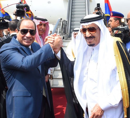 حرص #خادم الحرمين الشريفين  الملك سلمان بن عبد العزيز وفخامة الرئيس المصري  عبد الفتاح السيسي،  على رفع أيديهما متشابكتين، وذلك للدلالة علي العلاقات الطبية بين البلدين، وعلي إن جمهورية مصر العربية والمملكة العربية السعودية , يد واحدة في مواجهة التحديات، وذلك قبل صعود الملك إلي الطائرة ومغادرته القاهرة بعد زيارة رسمية استغرقت 5 أيام.
