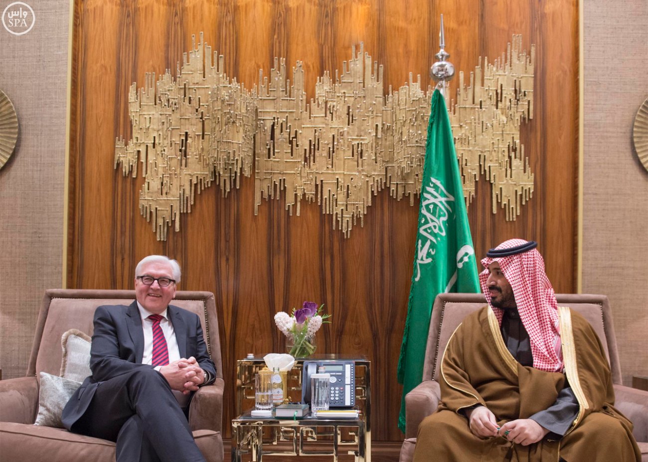 اجتمع صاحب السمو الملكي الأمير محمد بن سلمان بن عبدالعزيز ولي ولي العهد النائب الثاني لرئيس مجلس الوزراء وزير الدفاع في قصر اليمامة اليوم مع معالي وزير الخارجية الألماني الدكتور فرانك فالتو شتاينماير.