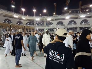 شارك أعضاء نادي النشامى التطوعي التابع لجمعية مراكز الأحياء بمنطقة مكة المكرمة في خدمة ضيوف الرحمن من الزوار والمعتمرين بالحرم المكي الشريف , وذلك بالتعاون مع مركز بادر للأعمال التطوعية التابع لتعليم منطقة مكة المكرمة بعدد 20 متطوعاً .