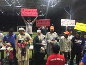 ولفت انتباه الحضور اهداء معصومة الحمدان  احدى المتطوعات ل” الصالح ” سجادة نقش عليها شعار الماراثون ، ملقية كلمة شكر وسط تفاعل الجمهور.