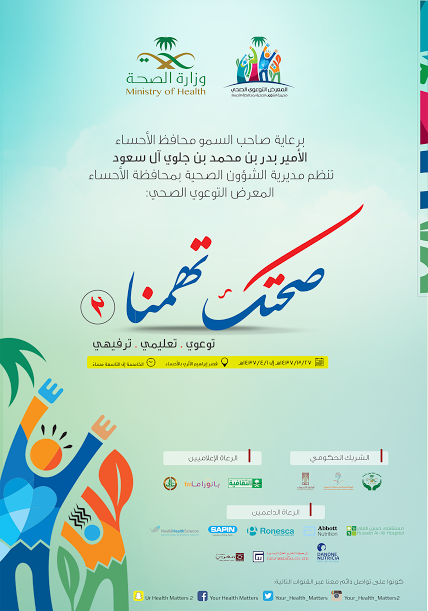 أكملت مديرية الشؤون الصحية بمحافظة الأحساء ممثلة في اللجنة المنظمة لمعرض صحتك تهمنا ٢ استعداداتها لإطلاق معرضها المرتقب في السابع والعشرين من الشهر الحالي والذي يأتي برعاية كريمة من صاحب السمو محافظ الأحساء الأمير بدر بن محمد بن جلوي آل سعود ، وذلك من خلال تجهيزها لعدد  (28) ركن توعوي في قصر إبراهيم الأثري بمشاركة أكثر من (180) من المختصين و الأطباء و الممارسين الصحيين و المتطوعين ، حيث تتنوع محتويات الأركان التوعوية الصحية للحديث عن الأمراض التنفسية و طرق الوقاية منها ، وأمراض القلب ،  والسمنة وطرق الحفاظ على الوزن السليم  ، وأمراض النساء والولادة ، والعديد من الأركان التي تعنى بالأمراض الشائعة في المجتمع وتلامس جميع أفراد الأسرة ، كما سيتضمن المعرض أركان ترفيهية وتثقيفية بمشاركة جمعيات مختصة وأندية ثقافيه لإقامة أمسيات أدبية ومحاضرات على المسرح المعد لهذه المناسبة والذي سيحوي أيضا فرق ترفيهية للأطفال وفرق إنشادية.