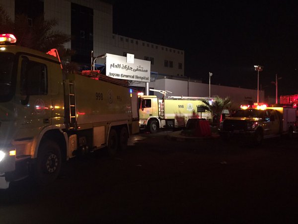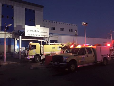 وأوضح المتحدث الرسمي لمديرية الدفاع المدني بمنطقة جازان الرائد/ يحيى القحطاني أن غرفة القيادة والسيطرة تلقت بلاغاً في تمام الساعة الثانية وعشر دقائق عن وقوع حادث حريق بمستشفى جازان العام بالدور الأول بقسم العناية المركزة والنساء الولادة والحضانة وتم انتقال أربع فرق من مدينة جيزان وتم دعمها بـ 17 فرقة إطفاء وإنقاذ وإسعاف وسلالم من كافة إدارات ومراكز المنطقة بالإضافة إلى جميع الجهات الإسعافية والأمنية والخدمية التي شاركت في الحادث حيث قامت الفرق بعملية إخلاء للموقع والسيطرة على الحادث.