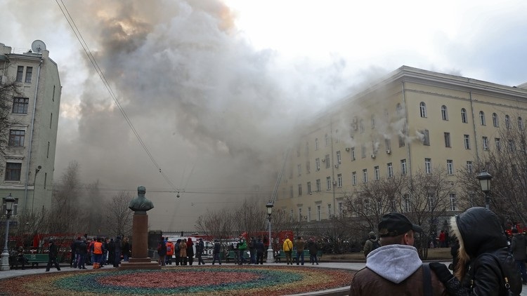 اعلنت الأجهزة الأمنية في موسكو أن حريقا اندلع اليوم الأحد في أحد المباني التابعة لوزارة الدفاع الروسية في العاصمة.ونقلت قناة “روسيا اليوم” على موقعها الإلكتروني عن مصدر أمني أن فرق الإنقاذ أجلت نحو 50 شخصا من المبنى المكون من خمسة طوابق والواقع في شارع زنامينكا وسط موسكو.وأكد المصدر أن ثمة تهديدا بأن ينتشر الحريق إلى المباني المحيطة، مشيرا إلى أن 120 من رجال الطوارئ يشاركون في إطفاء الحريق.