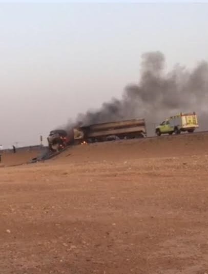 ارتفعت حصيلة وفيات الحادث المروري المروِّع الذي وقع على طريق الرياض – القصيم  عند مفرق رويغب وتقاطع ثمامة مساء اليوم بين حافلة ركاب  تحمل 50 راكباً من جنسيات مختلفة ,وشاحنة؛ إذ بلغ عدد المتوفين ١٥ حالة.وأوضح عبدالله المريبض، المتحدث الرسمي للهلال الأحمر بمنطقة الرياض، أن غرفة العمليات تلقت بلاغًا عند الساعة الـ5:52 مساء، يفيد بوجود حادث تصادم وحريق بـ”باص” على طريق القصيم، بعد كوبري الحسي؛ فتم توجيه 15 فرقة إسعافية وطائرتين للإسعاف الجوي، ووُجد في الموقع 45 إصابة.وقال: “الحالات هي 15 وفاة، و5 إصابات حرجة، و14إصابة متوسطة، و11 إصابة طفيفة. وقد تم تقديم الخدمة الطبية الطارئة للحالات، ونقل الإصابات للمنشآت المناسبة لوضعها”.