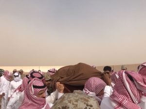 ودع أهالي مدينة القيصومة شهيد الوطن الجندي أول عبدالعزيز بن صاهد نهارالحربي والذي استشهد في الحد الجنوبي أثناء تأديته واجبه الوطني بعزوكرامة ، وأديت عليه صلاة الجنازة بعد صلاة عصرمساء يوم أمس الاثنين في جامع معاذ بن جبل بمدينة القيصومة وتقدم صفوف المصلين محافظ حفرالباطن عبدالمحسن العطيشان ومساعد قائد المنطقة الشمالية اللواء ركن صالح أحمد الزهراني ومدير شرطة حفرالباطن بالإنابة العقيد فايزالشهراني ورئيس لجنة الشهداء والمصابين في المنطقة الشمالية العميد ركن محمد الدرعمي وقائد مجموعة الشرطة العسكرية العميد ركن جميل جبريل الجعيد والمقدم خالد ابراهيم القديري وجمع من العسكريين والمدنيين وأقارب الشهيد ، يذكر بأن جثة الشهيد قد وصلت يوم أمس في تمام الساعة الثانية عشر والنصف ظهراً إلى مطار القيصومة وتم الصلاة عليه مباشرة بعد صلاة العصر وتم دفنه بمقبرة القيصومة ، من جهة أخرى قدم محافظ حفر الباطن عبدالمحسن العطيشان واللواء ركن صالح الزهراني التعزية لذوي الشهيد ونقلوا تعازي  القيادة الحكيمة  لهم مثمنين الدورالبطولي الذي قام به الشهيد ومؤكدين بالوقت نفسه حرص ولاة الأمرعلى متابعة أبنائهم ومواساتهم والوقوف معهم جنباً إلى جنب داعيين الله عز وجل أن يحفظ بلادنا من كل سوء وأن يتغمد الشهداء بواسع رحمته وغفرانه .