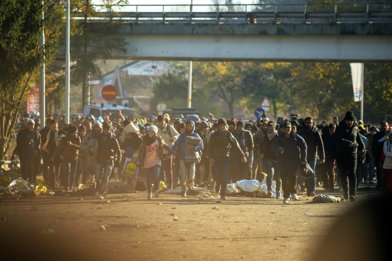 مهاجرون ولاجئون يركضون لعبور الحدود السلوفينية النمسوية من مدينة شنتيلي السلوفينية