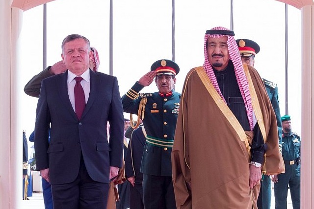 وصل جلالة الملك عبدالله الثاني بن الحسين ملك المملكة الأردنية الهاشمية اليوم إلى الرياض، في زيارة للمملكة.وكان خادم الحرمين الشريفين الملك سلمان بن عبدالعزيز آل سعود – حفظه الله – في مقدمة مستقبلي جلالته بمطار قاعدة الملك سلمان الجوية.كما كان في استقبال جلالته، صاحب السمو الملكي الأمير فيصل بن بندر بن عبدالعزيز أمير منطقة الرياض، وصاحب السمو الأمير خالد بن فيصل بن تركي سفير خادم الحرمين الشريفين لدى الأردن، ومعالي وزير الدولة عضو مجلس الوزراء الدكتور عصام بن سعد بن سعيد الوزير المرافق، ومعالي رئيس المراسم الملكية الأستاذ خالد بن صالح العباد، ومعالي أمين منطقة الرياض المهندس إبراهيم بن محمد السلطان، ومعالي سفير الأردن لدى المملكة جمال الشمايلة.وعقب استراحة قصيرة في صالة التشريفات بالمطار، صحب خادم الحرمين الشريفين الملك سلمان بن عبدالعزيز آل سعود أخاه جلالة الملك عبدالله الثاني بن الحسين ملك المملكة الأردنية الهاشمية في موكب رسمي إلى مقر الديوان الملكي.