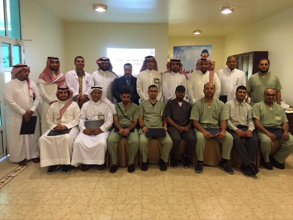 تقيم الإدارة العامة لصحة البيئة في أمانة المنطقة الشرقية ورشة تدريبية بعنوان ( طرق الكشف عن صلاحية اللحوم نظرياً وعملياً ) والتي بدأت اليوم الاحد الموافق 18/6/1437هـ، وتستمر لمدة ثلاثة أيام بمسلخ الدمام المركزي، وذلك بالتعاون المقاول المشغل للمسلخ مع مؤسسة محمد بن جربوع ولكافه المراقبين من أطباء ومساعدي البيطريين والمراقبين الصحيين لبلديات حاضره الدمام والمختصين بمراقبه اللحوم بنقاط البيع والملاحم.