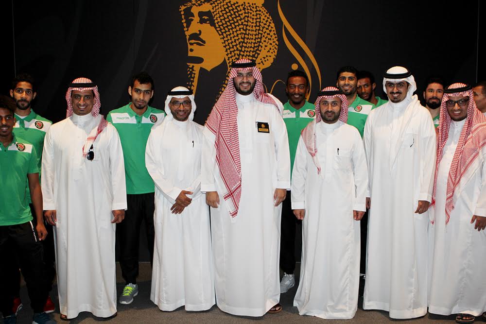 دعا الأمير تركي بن محمد بن فهد  رئيس اللجنة التنفيذية لمعرض وفعاليات تاريخ الملك فهد بن عبدالعزيز “الفهد.. روح القيادة” لاعبي الاتفاق إلى مضاعفة جهدهم من أجل إعادة  الفريق الكروي الاول إلى مكانه الطبيعي في الدوري الممتاز منافساً لا مجرد مشارك فيه.وأشاد الأمير تركي بن محمد خلال لقائه بإدارة ولاعبي الاتفاق خلال زيارتهم لمعرض (الفهد.. روح القيادة)  بالعمل الذي تقوم به إدارة الاتفاق برئاسة خالد الدبل مؤكداً سعادته بأن يقود النادي نخبة من شباب المنطقة وأبناء النادي المؤهلين علمياً والذين يملكون لناديهم حباً كبيراً.وقال: “ثقتي في رئيس النادي خالد الدبل وأعضاء إدارته كبيرة لعملي بقدراتهم الشخصية وبحبهم لناديهم لذلك فأنا أتطلع بأن يثمر ذلك بعودة الاتفاق ليس للصعود للدوري الممتاز فقط بل بالعودة منافساً على الإنجازات كما كان قبل سنوات كواحد من أهم الأندية السعودية والعربية والخليجية”.وطالب الأمير تركي الأمير بمضاعفة جهودهم فيما تبقى من جولات في دوري الدرجة الأولى مشدداً على أن الروح والإخلاص هما السلاحان الأقوى في تحقيق آمال وتطلعات محبي النادي في هذه المرحلة الصعبة.