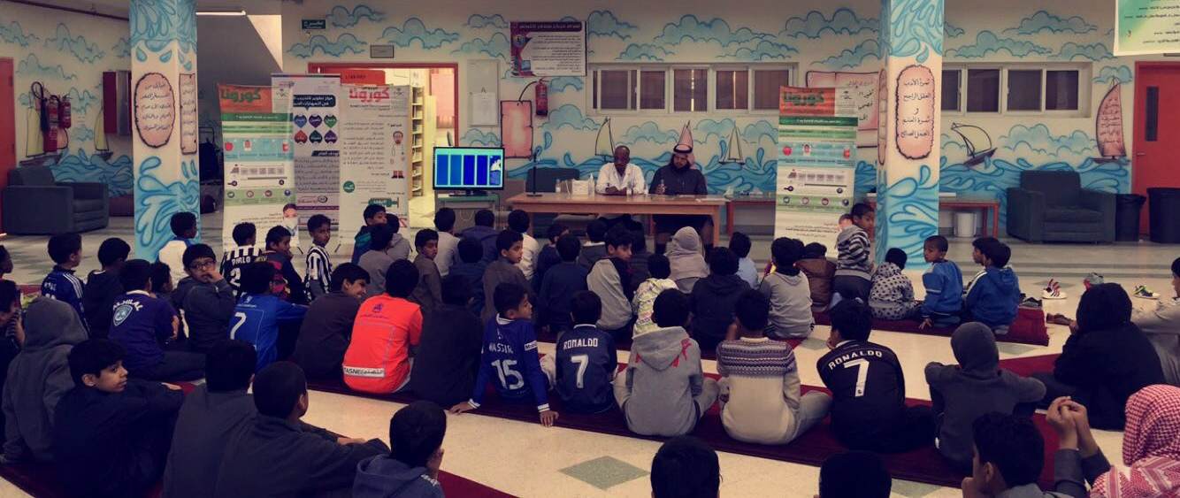محاضرة في احدى المدارس للتوعية بفيروس كورونا