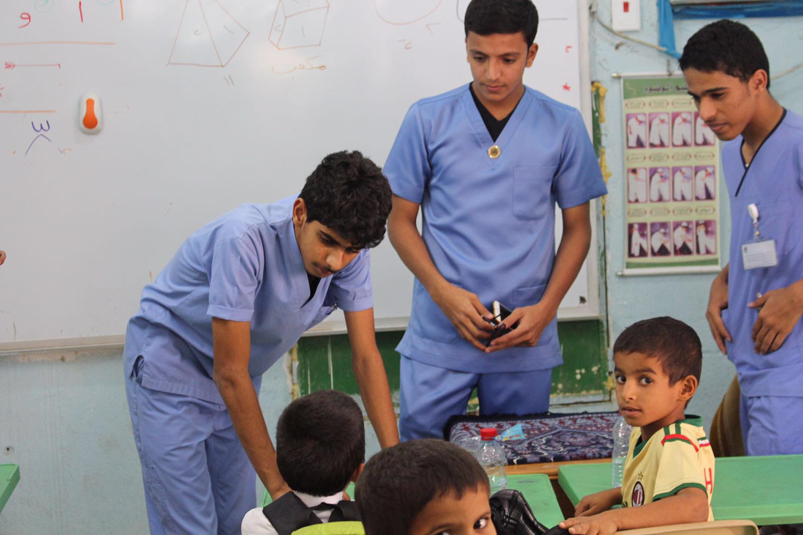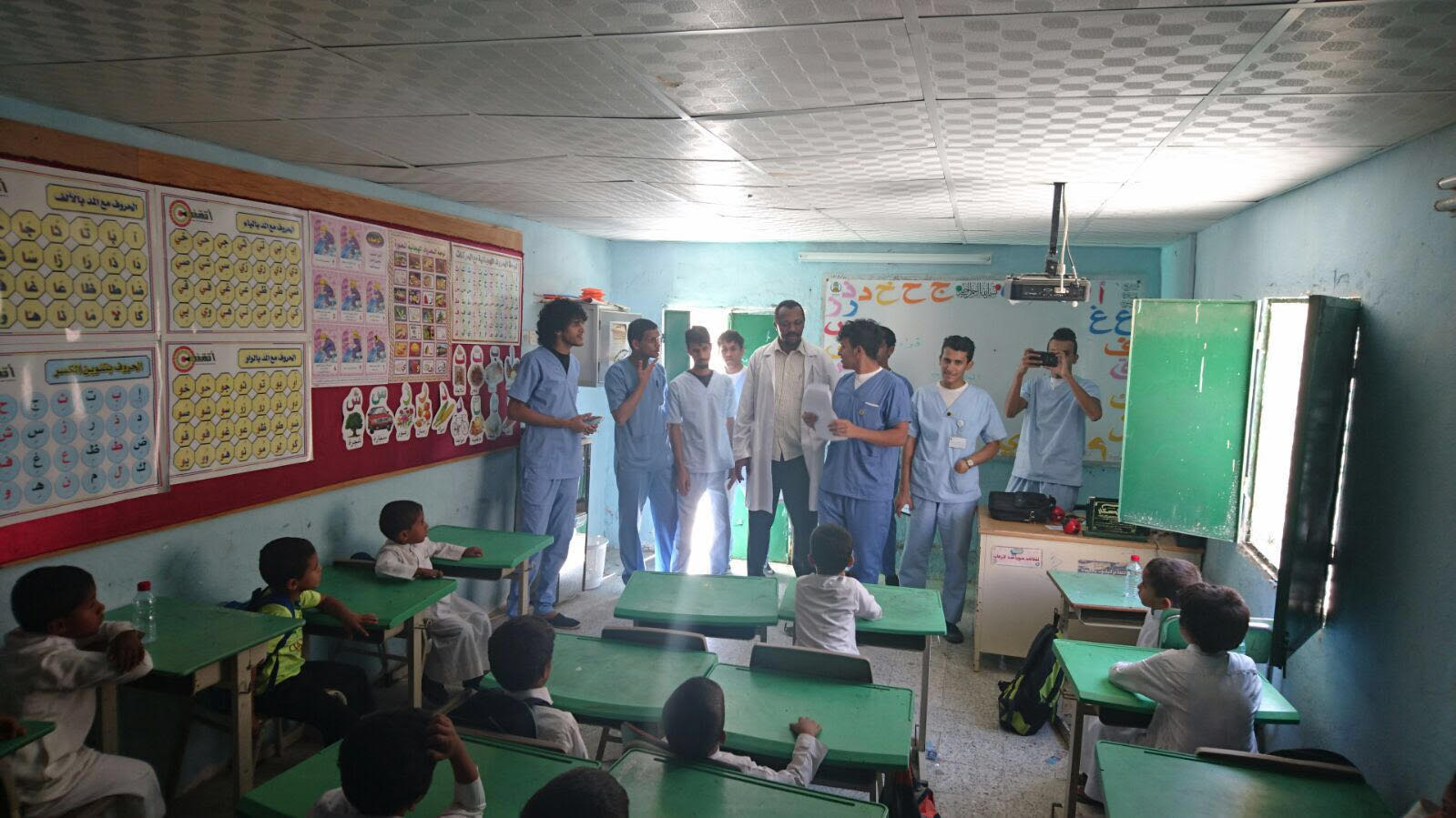 كما قدم طلاب الكلية شرحاً مفصلاً حول الأدوية وطرق التعقيم الصحيحة وشرع أعضاء هيئة التدريس بتثقيف المعلمين بتلك المدارس حول الوقاية وكيفية التعامل مع حالات الاشتباه وتطوير الواقع الصحي .