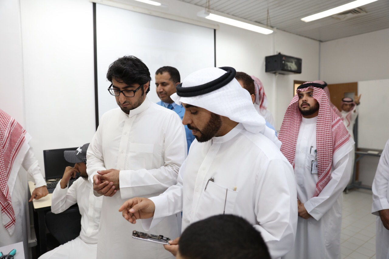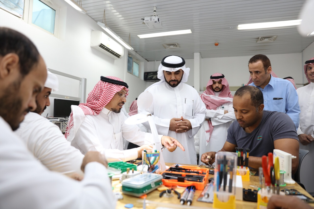 أطلع  محافظ المؤسسة العامة للتدريب التقني و المهني الدكتور أحمد بن فهد الفهيد خريجي البرنامج التدريبي المتخصص في الصيانة الأساسية للهواتف الذكية على الفرص المستقبلية المتاحة أمامهم بعد تخرجهم من الدورات التدريبية التي تنفذها الكليات والمعاهد التقنية مواكبة لقرار وزارة العمل القاضي بتوطين العمل في قطاع الاتصالات ,وذلك خلال زيارته للقاعات التدريبية التي تنعقد فيها البرامج في الكلية التقنية بالرياض.و التقى الدكتور الفهيد خلال زيارته الخريجين ممّن أنهوا تدريبهم في برنامج صيانة الجوال الأساسية حيث استمع لتقييمهم لجودة البرامج التدريبية المقدّمة لهم و شاهد بطريقة عملية المهارات المهنية و التقنية التي اكتسبوها و تعرف على طموحاتهم العملية و المهنية بعد انهائهم للبرنامج التدريبي,وقدّم لهم حقائب أدوات صيانة متنقلة للهواتف الذكية لتدعم خطواتهم الأولى في العمل بالمجال.و ألقى محافظ المؤسسة الضوء خلال حديثه مع الخريجين على المسارات المهنية المتاحة للملتحقين بالبرامج التدريبية التي أطلقتها المؤسسة لتوطين قطاع الاتصالات بدعمٍ من صندوق تنمية الموارد البشرية (هدف), سواءً بالفرص الوظيفية المتّوفرة و المتاحة في مجال الاتصالات أو  امكانية افتتاح مشاريع خاصة بهم من خلال الدعم المقدم من معهد ريادة الأعمال الوطني (ريادة),الذي صمّم برنامج دعم خاصفي”توطين الاتصالات”.و عبّر الدكتور الفهيد عن فخره واعتزازه بما لمسه من حماسٍ لدى الشباب السعودي للعمل في مجال صيانة الجوالات وبيعها,قائلاً إن  الإقبال  الكثيف على التسجيل من قبل الشباب و الفتيات عبر بوابة مركز الإعمال والذي وصل إلى (70) ألف طلب حتى الآن يؤكد أن تنمية هذا الوطن ستتّحقق بسواعد أبنائه وبناته.