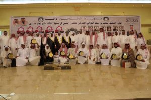 ، تلا ذلك كلمة لشيخ القبيلة سعود العرابي الحارثي شكرا فيها صاحب الجائزة على مايقدمه من جهود في تكريم وتشجيع ابناء وبنات القبيلة مشيرا الى أن هذه الجائزة تعد رافد مساعد للطلبه والطالبات من خريجي مختلف المراحل الدراسية لمواصلة تعليمهم والوصول الى القمة ،