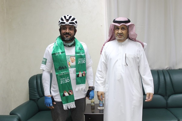 استقبل وكيل محافظة بدر أ / محمد عطية الجهني في مكتبة اليوم الاربعاء١٤٤٠/٨/١٢، الرحالة عبدالله بن علي زين الدين بعد وصوله إلي محافظة بدر بالدراجه الهوائيه قادماً من المدينة المنورة ،