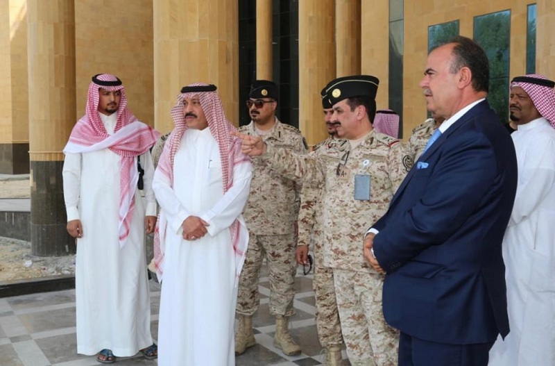 وكان في استقبال سموه الكريم حال وصوله لمقر المشروع سعادة مساعد وكيل الحرس الوطني للجهاز العسكري بالقطاع الشرقي اللواء الركن / أحمد بن سعيد ال مفرح وسعادة نائب مساعد الوكيل للجهاز العسكري بالقطاع الشرقي اللواء الركن فالح السبيعي ومدير عام الشئون الفنية اللواء/ بسام الشمري ومدير المشروع وفريق العمل الذي قدم شرحاً شامل عن سير العمل ومراحله بعد ذلك تجول سموه الكريم داخل المبنى وأعطى توجيهاته مع العلم أن نسبة الإنجاز للمشروع تزيد على تسعين بالمائة ومن المقرر تسليمه في نهاية العام الهجري الحالي أن شاء الله حسب الخطة الموضوعة .