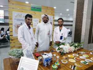 فعّل مستشفى الملك فهد الجامعي بالخبر التابع لجامعة الإمام عبد الرحمن بن فيصل ممثلاً بقسم التغذية في المستشفى يوم الغذاء العالمي وذلك بمعرض توعوي قدمت من خلال أركانه الخمسة وهي ركن عن أهمية شرب الماء وركن عن الأطعمة التي تعزز المناعة وركن نقص الحديد وسوء التغذية وركن سلامة الغذاء .