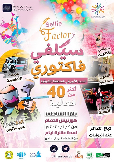 برعاية اعلامية من المختصر الاخبارية ينطلق اليوم الخميس الموافق 2/1/2020م مهرجان سيلفي فاكتوري والذي يعتبر الحدث الأبرز على مستوى المنطقة الشرقية في بلازا الشاطئ بكورنيش الدمام، ولمدة عشرة أيام .