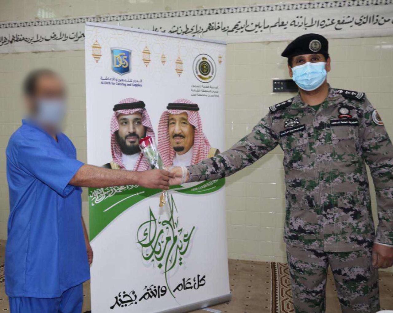 عايدت سجون المنطقة الشرقية نزلاء السجون بالمنطقة بمناسبة عيد الاضحى المبارك ،وسط اجراءات احترازية ووقائية، تضمنت توزيع الهدايا والحلويات على النزلاء ، وتبادل التهاني والتبريكات.