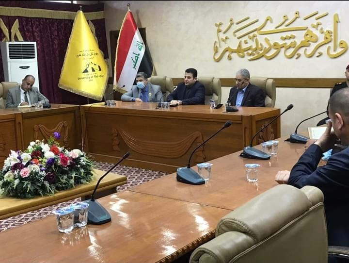 أستقبل السيد رئيس جامعة ذي قار الأستاذ الدكتور يحيى عبدالرضا عباس الخفاجي اليوم الأحد الموافق ٢٠٢٠/١١/٢٩ خلية إدارة الأزمة في المحافظة برئاسة المستشار السيد قاسم الأعرجي وبرفقته الفريق عبدالغني الأسدي رئيس جهاز الأمن الوطني وبعد الترحيب بالسادة الضيوف ، تم عقد إجتماع مع السيد رئيس الجامعة وبحضور السيدين المساعدين لرئيس الجامعة وعدد من عمداء الكليات والأساتذة الأكاديميين وتم الأستماع الى آراء الأساتذة في مايخص أزمة المحافظة وإمكانية حلها .