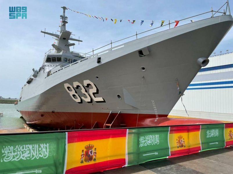 عومت القوات البحرية الملكية السعودية سفينة جلالة الملك “حائل” أمس (الثلاثاء)، وهي السفينة الثالثة ضمن مشروع السروات الذي يضم خمس سفن من نوع “كورفيت أفانتي 2200″، في حوض بناء السفن التابع لشركة نافانتيا في مدينة سان فرناندو بإسبانيا.