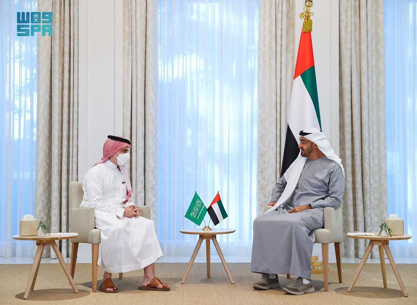 ونقل وزير الخارجية تحيات وتقدير خادم الحرمين الشريفين الملك سلمان بن عبدالعزيز آل سعود، وولي العهد نائب رئيس مجلس الوزراء وزير الدفاع الأمير محمد بن سلمان بن عبدالعزيز وتمنياتهما لولي عهد أبوظبي ولشعب الإمارات العربية المتحدة الشقيق المزيد من التقدم والازدهار.