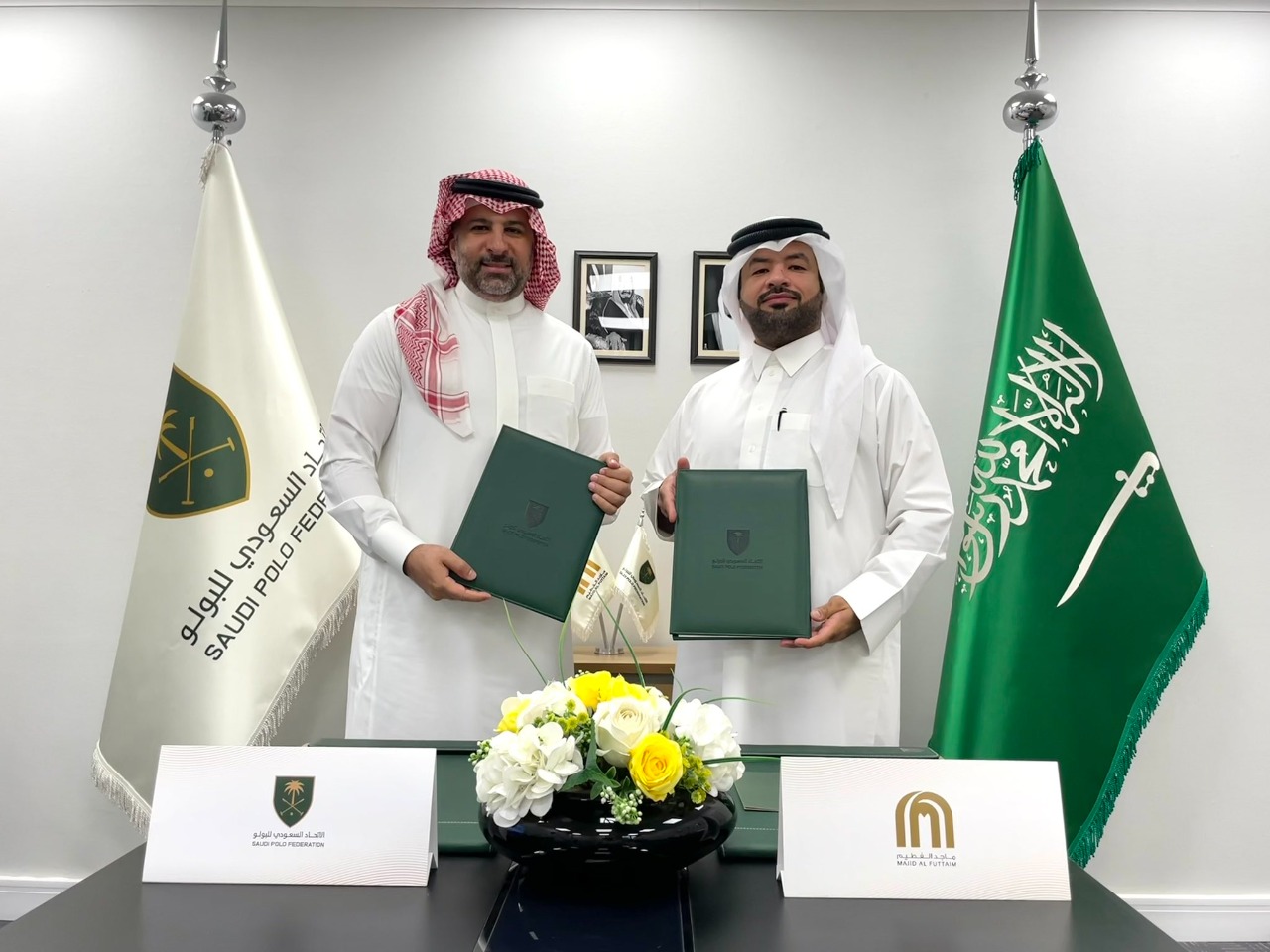 وقع الاتحاد السعودي للبولو ممثلا في رئيس مجلس الإدارة المهندس عمرو زيدان، وشركة “ماجد الفطيم العقارية المحدودة ” ممثلا في رئيس مجلس الإدارة خالد العجمي، مذكرة تعاون بين الطرفين لمدة عام، وذلك في مقر الاتحاد بمجمع الأمير فيصل بن فهد الأولمبي في الرياض.