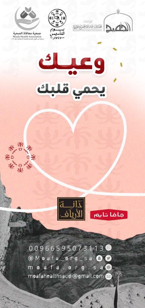 أقامت جمعية معافاة الصحية الخيرية بالرياض حملة توعوية بعنوان : ( وعيك يحمي قلبك ) والتي تهدف إلى توعية المجتمع بصحة القلب والعلامات الحيوية له