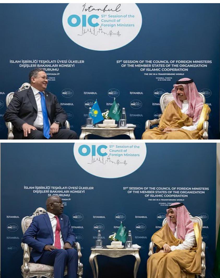 التقى وزير الخارجية الأمير فيصل بن فرحان بن عبدالله اليوم في مدينة إسطنبول التركية، على هامش أعمال الدورة الحادية والخمسين لمجلس وزراء خارجية منظمة التعاون الإسلامي، كلًا من وزير خارجية جمهورية كازاخستان، مراد نورتليو، ووزير الشؤون الخارجية والتعاون الدولي والموريتانيين في الخارج، محمد سالم ولد مرزوك.