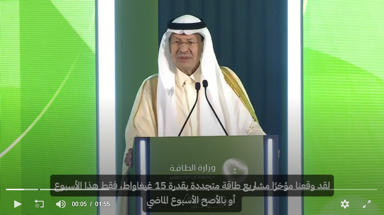 أكد وزير الطاقة الأمير عبدالعزيز بن سلمان، أن المملكة تنفذ مشاريع تتعلق بالطاقة المتجددة بأسعار تنافسية جدًا، سواء على مستوى طاقة الرياح أو الطاقة الشمسية، وذلك بالتوازي مع توسعات لا مثيل لها في مجال إنتاج الغاز.