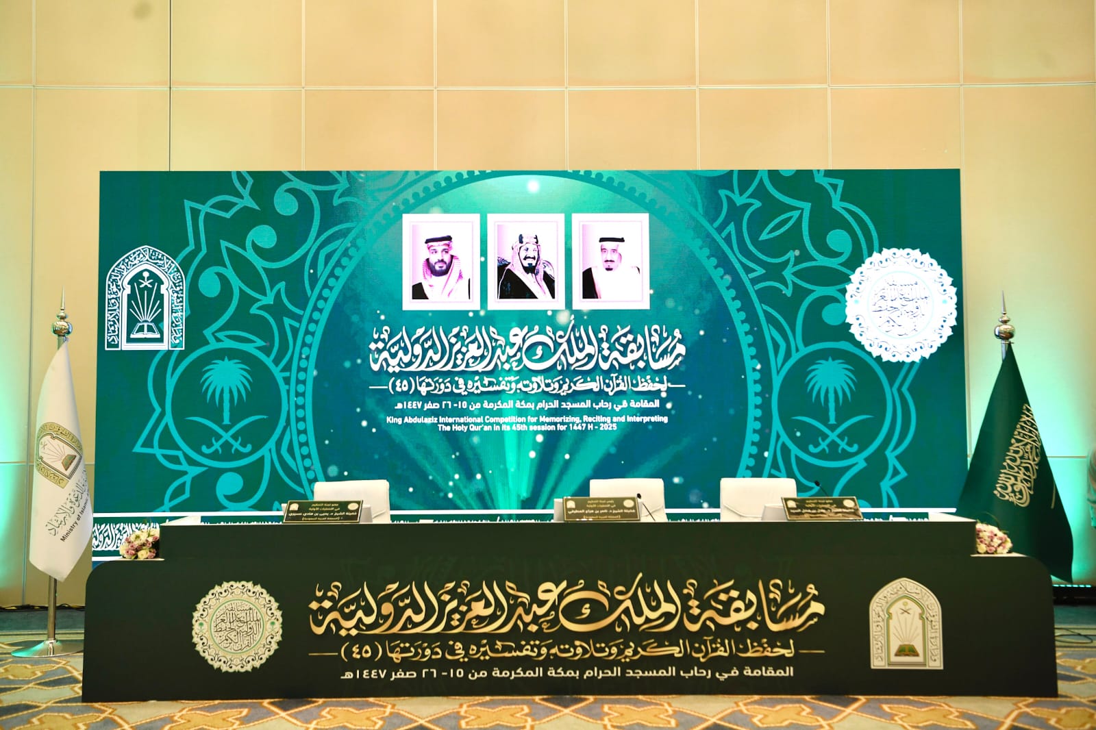 برعاية كريمة من خادم الحرمين الشريفين الملك سلمان بن عبدالعزيز آل سعود – حفظه الله – انطلقت التصفيات النهائية لمسابقة الملك عبدالعزيز الدولية لحفظ القرآن الكريم وتلاوته وتفسيره في دورتها الخامسة والأربعين، التي تنظمها وتشرف عليها وزارة الشؤون الإسلامية والدعوة والإرشاد. يوم السبت 15 صفر في رحاب المسجد الحرام، وسط أجواء إيمانية وروح تنافسية عالية بين المشاركين.
