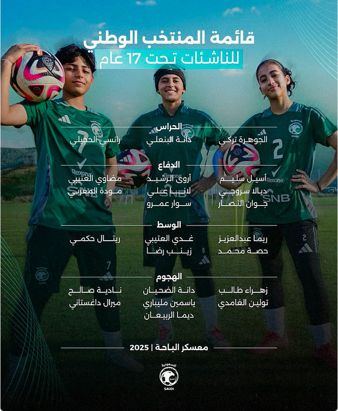 بدأ المنتخب السعودي للناشئات تحت 17 عامًا معسكره التدريبي في مدينة الباحة، والذي يمتد حتى 25 من هذا الشهر تحت إشراف المدربة اليونانية كاترينا فاليدا.
