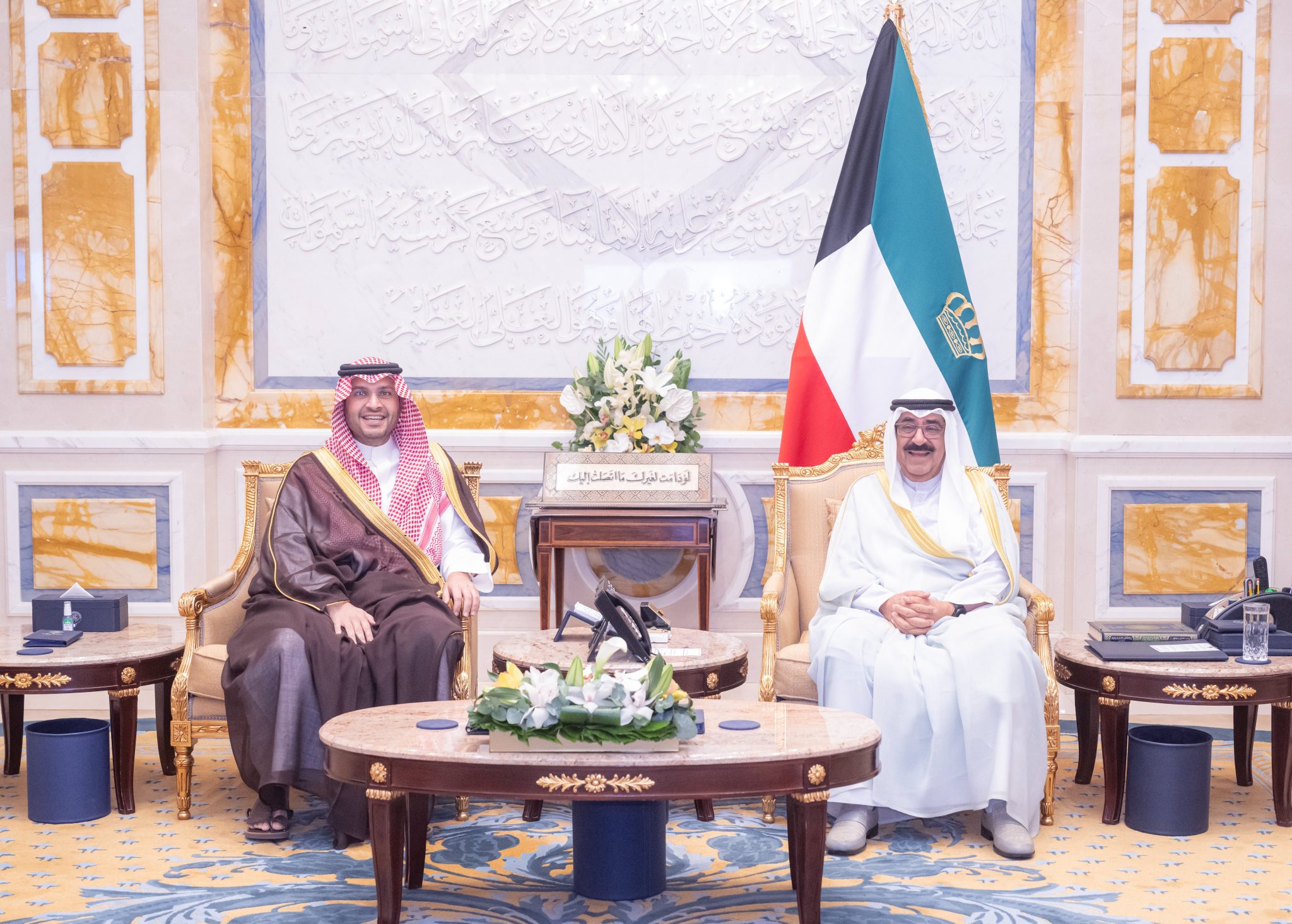 استقبل أمير دولة الكويت، الشيخ مشعل الأحمد الجابر الصباح، اليوم الاثنين، في قصر بيان، الأمير تركي بن محمد بن فهد بن عبدالعزيز آل سعود، وزير الدولة وعضو مجلس الوزراء بالمملكة العربية السعودية، بمناسبة زيارته الرسمية للكويت.
