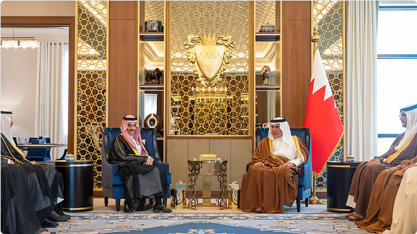 ونقل سموه في بداية الاستقبال تحيات خادم الحرمين الشريفين الملك سلمان بن عبدالعزيز آل سعود، وصاحب السمو الملكي الأمير محمد بن سلمان بن عبدالعزيز آل سعود ولي العهد رئيس مجلس الوزراء -حفظهما الله-، للقيادة البحرينية، وتمنياتهما لحكومة وشعب البحرين الشقيق المزيد من التقدم والازدهار، فيما حمّل سموه تحيات وتقدير القيادة البحرينية لخادم الحرمين الشريفين وسمو ولي العهد والتمنيات لحكومة وشعب المملكة المزيد من الازدهار والرفاه.