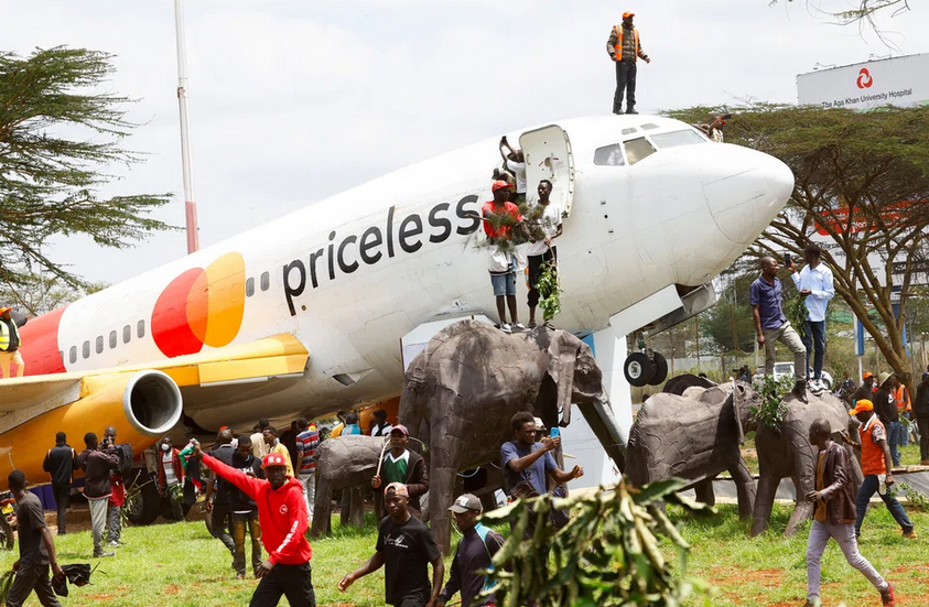 وبينما توجه الرئيس ويليام روتو ومسؤولون آخرون إلى المطار لاستقبال الجثمان بمراسم عسكرية، اجتاح المشيعون الذين كانوا يلوحون بالأغصان والأعلام أرض المطار أثناء إنزال النعش من الطائرة، مما أدى إلى توقف جزئي للمراسم.