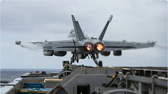 وأضاف البيان أنه بعد حوالي (30) دقيقة، تحطمت مقاتلة من طراز (F/A-18F) سوبر هورنت أثناء قيامها بعمليات روتينية من قاعدة نيميتز، مشيرًا إلى أن فردَي الطاقم قفزا بالمظلة وتم انتشالهما بسلام.