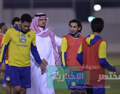 ثم التقى رئيس النادي صاحب السمو الملكي الأمير فيصل بن تركي بن ناصر بالمدرب واللاعبين بحضور نائبه العميد فهد المشيقح والأستاذ عبدالرحمن الدهام عضو مجلس الإدارة والأستاذ سالم العثمان عضو مجلس الإدارة مدير عام كرة القدم