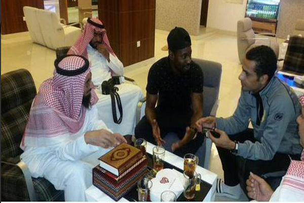 انتشرت على موقع التواصل الاجتماعي “تويتر” صورة لإشهار إسلام المحترف الكونغولي في صفوف فريق القادسية السعودي اللاعب ليس موتيس.
