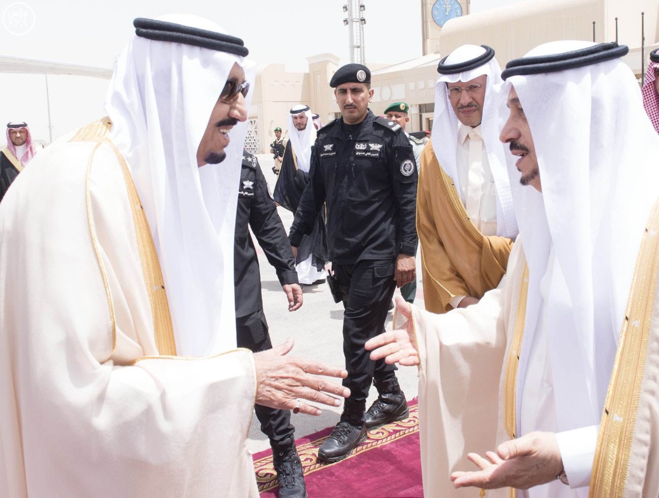 وقد غادر بمعية خادم الحرمين الشريفين كل من صاحب السمو الأمير خالد بن فهد بن خالد وصاحب السمو الملكي الأمير مقرن بن عبدالعزيز آل سعود وصاحب السمو الملكي الأمير منصور بن سعود بن عبدالعزيز وصاحب السمو الملكي الأمير طلال بن سعود بن عبدالعزيز وصاحب السمو الأمير خالد بن سعد بن فهد وصاحب السمو الأمير فهد بن عبدالله بن عبدالعزيز بن مساعد وصاحب السمو الملكي الأمير سطام بن سعود بن عبدالعزيز وصاحب السمو الملكي الأمير حسام بن سعود بن عبدالعزيز وصاحب السمو الملكي الأمير الدكتور عبدالعزيز بن سطام بن عبدالعزيز مستشار خادم الحرمين الشريفين وصاحب السمو الملكي الأمير منصور بن مقرن بن عبدالعزيز مستشار خادم الحرمين الشريفين وصاحب السمو الملكي الأمير محمد بن عبدالرحمن بن عبدالعزيز وصاحب السمو الملكي الأمير بندر بن سلمان بن عبدالعزيز وصاحب السمو الملكي الأمير راكان بن سلمان بن عبدالعزيز .