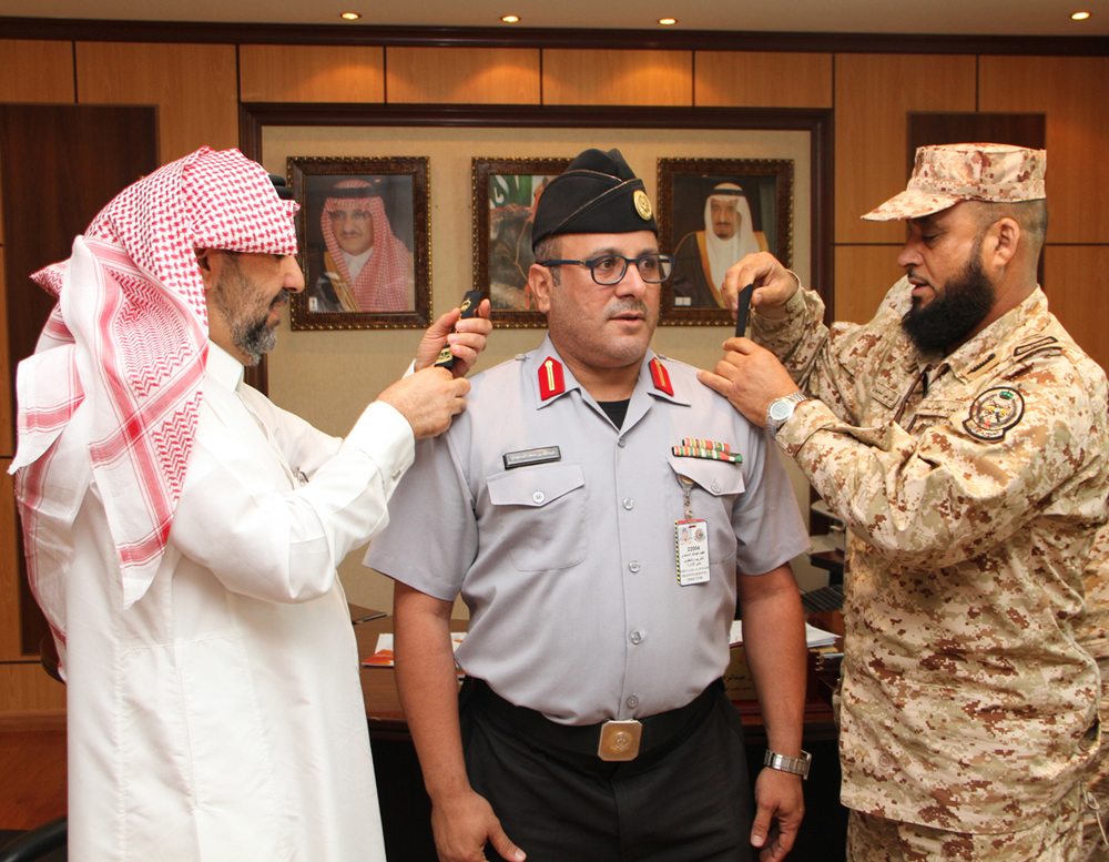 قلَّد المدير الإقليمي التنفيذي للشؤون الصحية في وزارة الحرس الوطني بالقطاع الشرقي الدكتور أحمد بن عبدالرحمن العرفج، وقائد الطب العسكري الميداني بالقطاع الشرقي اللواء مدني بن علي البديوي، مدير إدارة التدريب والتطوير في مستشفى الإمام عبدالرحمن بن فيصل في الدمام، العميد عبدالله بن سعد السنيدي، رتبته الجديدة، وأوضح العميد السنيدي أن “هذه الرتبة تشريف وتكليف من أجل بذل المزيد لخدمة هذا الوطن الغالي، وأعاهد الله أن أبقى وفيَّا مخلصاً لديني ووطني ثم مليكي، وأن أكون عند حسن الظن”.
