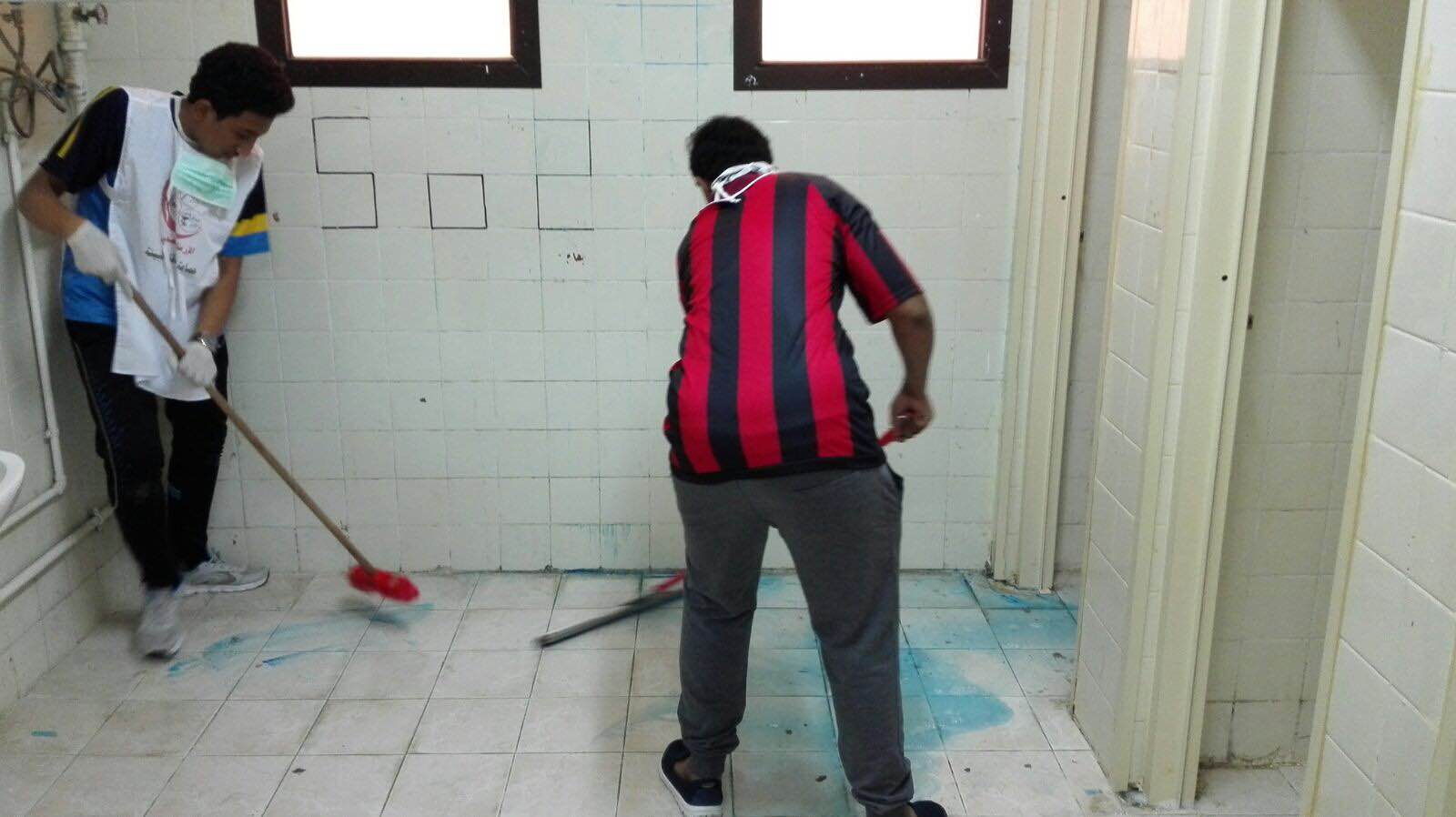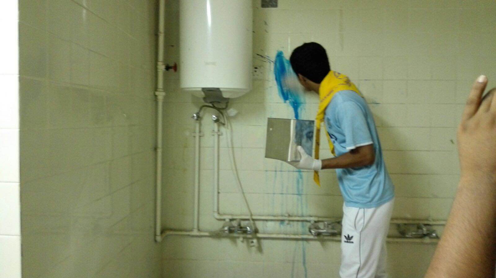 وذلك بتظافر من أعضاء الفرقة الكشفية وأعضاء النادي الصحي وبإشراف القائد الكشفي والمرشد الصحي الأستاذ محمد بن ابراهيم النصيب ,حيث كانت نظافة البيئة المدرسية من اكبر اهتماماته .