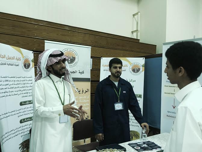 شاركت كلية الجبيل الجامعية في معرض ((التعريف بالجامعات )) والذي نظمته مؤخرا مدارس الظهران الأهلية بحضور ((22)) جهة تعليمية وتهدف المشاركة لبيان رؤية ورسالة الكلية ودورها في تزويد سوق العمل بالكوادر الشابة المؤهلة المنافسة بالإضافة الى التعريف بالتخصصات العلمية والبرامج الدراسية التي تقدمها,