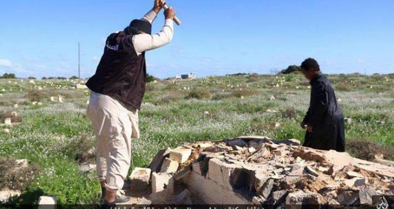 نشر تنظيم داعش اليوم الجمعة، صورا قال عنها إنها جانب من نشاط ديوان الحسبة في مدينة سرت لـ”تسوية القبور المشرفة”. ويظهر في الصور سيارات تابعة لما يسمى بـ”ديوان الحسبة” وعناصر من التنظيم يهدمون قبورا بمعاول في أحد مقابر مدينة سرت. وكان التنظيم الإرهابي الذي يسيطر على سرت منذ ستة أشهر قد أكد في وثيقة اصدرها مؤخرا أنه ماض في “طمس التماثيل والمشاهد والمزارات والمراقد الشركية وتسويتها بالأرض” في إشارة إلى الآثار والأضرحة والقبور المنتشرة في أنحاء البلاد.