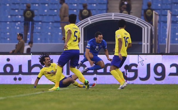 حسم الهلال مواجهة الديربي أمام غريمه النصر بهدفين مقابل هدف، ضمن افتتاح الجولة السابعة (المؤجلة) من دوري عبداللطيف جميل والتي جمعتهما على استاد الملك فهد الدولي بالرياض بدأت المواجهة بضغط نصراوي وتصدت العارضة لكرة حسين عبدالغني، تبعتها فرصة أخرى للسهلاوي لكنه تعامل معها دون تركيز، قبل أن يفاجيء سالم الدوسري الجميع ويفتتح باب التسجيل للهلال بعد كره عرضيه من البريك إلى البرازيلي إداواردو الذي جهزها لسالم الدوسري ليضعها على يمين حارس النصر شيعان (26) . وفي الوقت بدل الضائع تمكن محمد السهلاوي من تعديل النتيجة للنصر من ركلة جزاء بعد أن تمت عرقلته من قبل سعود كريري داخل منطقة الجزاء . وفي الشوط الثاني تمكن كارلوس إدواردو من إضافة الهدف الثاني للهلال (72) بعد تمريره من مواطنه ألميدا رواغ معها مدافع النصر عمر هوساوي وليضعها في شباك الحارس عبدالله العنزي الذي دخل بديلا بعد إصابة حسين شيعان وبهذه النتيجة ينهي الهلال الدور الأول برصيد 33 نقطة متساويا مع الأهلي في الصدارة، فيما تلقى النصر خسارته الثانية على التوالي والثالثة هذا الموسم وبقي سادسا برصيد 18 نقطة .