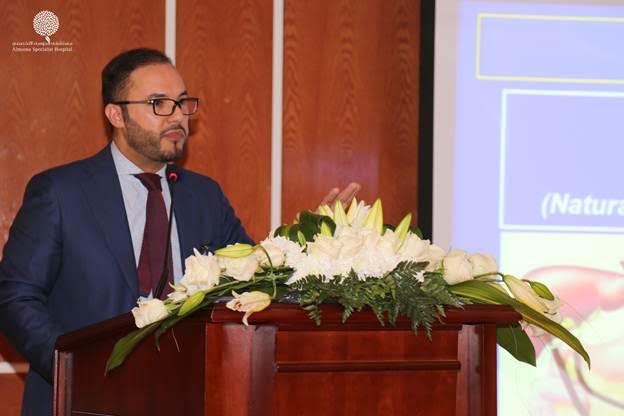 هذا وتقدم سعادة مدير صحة الأحساء الدكتور محمد العبد العالي حيث رحب بالحضور وآشاد بالتعاون الطبي المشترك بين القطاع الحكومي والخاص ، وأثنى على مستشفى الموسى التخصصي على مساهمته الفعالة بإقامة المؤتمرات والفعاليات المختلفة الموجهة إما للمجتمع أو الكادر الصحي من أجل تحقيق هدف رفع الوعي الصحي لدى الجميع ، كما تكلم عن جراحة المناظير باختلاف أطيافها وممارستها وماتحتاجه من المهارات والتجهيزات والقدرات في الفريق الطبي ، وأيضاً تحدث عن عن عناصر واهداف سلامة المرضى ، وأهمية الفحص والأخذ بالأجراءات الوقائية من كورونا ، كما شكر مستشفى الموسى التخصصي وإدارته والقائمين على البرنامج العلمي من الأطباء ، و اللجنة المنظمة على التنظيم ، وعندها تقدم المدير التنفيذي لمستشفى الموسى التخصصي أ. مالك الموسى بتقديم درع تذكاري تكريماً وتشريفاً لسعادة الدكتور محمد العبد العالي .