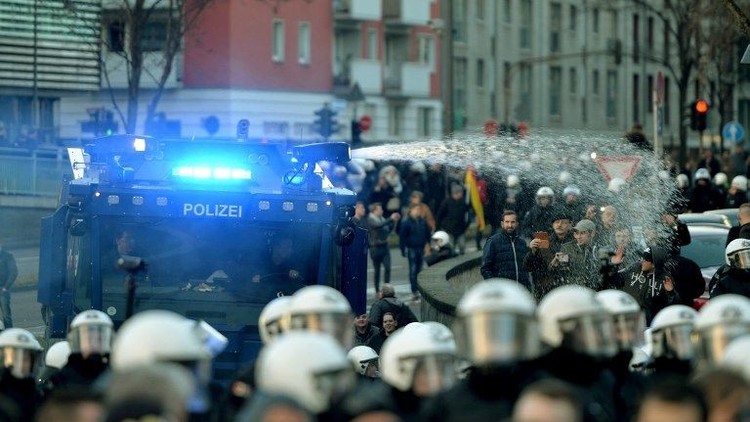 شهدت مدينة كولونيا غرب ألمانيا صدامات بين متظاهرين من اليمين المتطرف معادين للمهاجرين، والشرطة التي لجأت إلى استخدام لغاز المسيل للدموع وخراطيم المياه لتفريقهم. وكانت التظاهرة التي انطلقت اليوم السبت التاسع من يناير قد بدأت سلميا احتجاجا على موجة اعتداءات على نساء خلال احتفالات رأس السنة في المدينة، لكنها تحولت إلى العنف عندما بدأت مجموعة من المتظاهرين اليمينيين بقذف رجال الشرطة بالزجاجات والأسهم نارية. ودوت الصفارات وطلبت الشرطة من المحتجين السلميين مغادرة المكان، وفتحت خراطيم المياه لتفريق الحشد الذي ازداد غضبا. وأكد مصدر في الشرطة أن نحو 800 مشاغب كانوا من بين 1700 شخص شاركوا في المسيرة التي نظمتها حركة “الوطنيين الأوروبيين ضد أسلمة الغرب” المعروفة اختصارا بـ “بيغيدا”