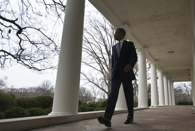 الرئيس الاميركي باراك اوباما يسير في فناء البيت الابيض قبيل آخر خطاب له حول حالة الاتحاد