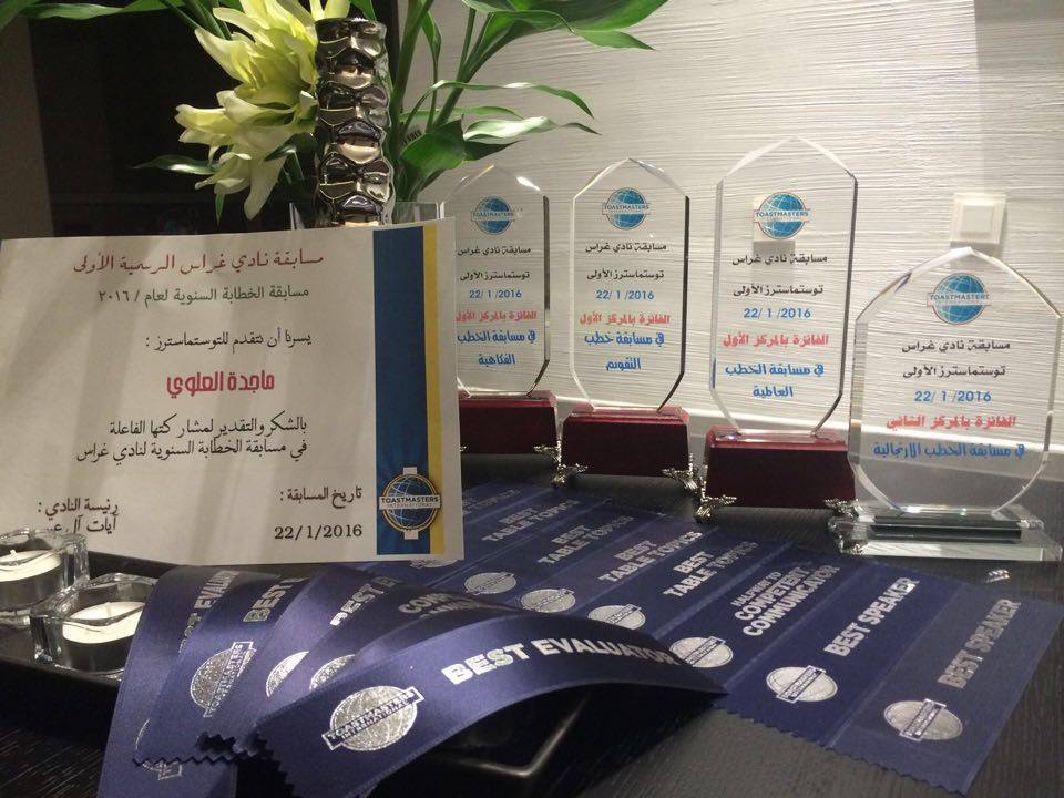 افتتح نادي غراس توستماسترز مسابقات المنطقة ( ٤٥ ) التي تضم ٤ أندية نسائية عربية ونادي نسائي باللغة الانكليزية .. و تعتبر هذه المسابقة الأولى رسمياً للنادي . شهدت المسابقة حضور لا مثيل له على صعيد كل اللقاءات منذ افتتاح نادي غراس حيث مثل عدد الحضور مايقارب ٨٠ بين عضوات وضيفات وتنوع الحضور ، حيث حضر جمهور من صفوى والقطيف والدمام والأحساء . المنافسة كانت قوية جداً ، بين المتسابقات المتكمنات .. حيث مثلت التوستماسترز ماجدة العلوي البطل في المسابقات فحصلت على المركز الأول في مسابقات الخطب العالمية والتقويم والفكاهية بينما حصلت على المركز الثاني في المسابقة الارتجالية .. فيما كانت التوستماسترز هداية اليوسف الأولى في الخطب الارتجالية .. وكانت التوستماسترز آيات آل عيسى في المركز الثاني للخطب المعدة والتوستماسترز زهراء الرهين في المركز الثاني للخطب الفكاهية .. من جانب آخر صرحت المتسابقة التوستماسترز ماجدة العلوي .. عن فوزها في المسابقة الرسمية الأولى : خضتُ تجربة السابقة للمسابقات في مرحلة تجريبية سابقة لنادي غراس توستماسترز .. مما جعلني أتغلب على الخوف في خوض دخول المنافسة للمسابقة الرسمية الأولى .. ما زاد حماسي وتفاعلي هو الجمهور الغفير الذي لم نعهد حضوره في اللقاءات السابقة . كنت المتسابقة الأخيرة في مسابقة الخطب العالمية .. والمواضيع المطروحة من قبل المتسابقات الأخريات كانت قوية جداً ، وهذا مازاد قوة المنافسة . كما شكرت العلوي نادي غراس ، وعضوات النادي للتنظيم وتمثيل روح الفريق الواحد والخروج بصورة متميزة للنادي في مسابقته الأولى .. وأضافت إن حضور مثل هذا الجمهور إن دل ، دلَّ على زيادة الوعي والاهتمام .. فنوادي التوستماسترز كانت شيء مبهم في المجتمع ثم اقتصر على موضوع الخطابة لكن الآن توسع هذا المفهوم ليعي أفراده أهمية التواصل مع الآخرين في شتى مجالات الحياة . ثم ختمت حديثها بدعوة طبقات المجتمع للانضمام لنوادي التوستماسترز .. كما وجهت شكرها لرئيسة النادي الحالية آيات آل عيسى لتنظيمها للمسابقة والحرص على تطوير عضوات النادي من خلال إقامة دورات مجانية لعضوات النادي .. مما ساهمت في تغيير حركة النادي . بينما تحدثت الفائزة بالمركز الأول ضمن مسابقة الخطب الارتجالية التوستماسترز هداية اليوسف : لم أتوقع الفوز بالمركز الأول لما رأيته من كفاءة منافساتي و أدائهم القوي على المسرح فوضعت آمالي على المركز الثاني فما إن تم الإعلان عن صاحبته حتى تمنيت لنفسي حظاً موفقاً في المسابقات القادمة. لأتفاجئ بعدها بإعلان اسمي الفائزة بالمركز الأول في الخطب الإرتجالية و كم هو جميل شعور الفوز خصوصاً عندما لا تتوقع أن يكون من نصيبك. كانت ليلة مميزة جداً أنجحتها سواعد العضوات و المنظمات للمسابقة و تعاونهم جميعاً على إظهار نادي غراس توستماسترز بصورة تليق بأهدافه و تكون جاذبة للجمهور . انتهت المسابقة بشكر كل من ساهم في إنجاح المسابقة من رعاة وإعلاميين .. وفريق تنظيم متكامل .. وكان الشكر الكبير إلى الأستاذة فوزية الهاني التي تبنت النادي في مركزها ( غراس الخير ) .