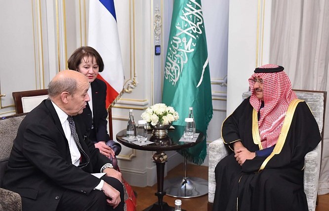 بحث صاحب السمو الملكي الأمير محمد بن نايف بن عبدالعزيز ولي العهد نائب رئيس مجلس الوزراء وزير الداخلية – حفظه الله – مع معالي وزير الدفاع بجمهورية فرنسا جون أف لودريان عددًا من الموضوعات ذات الاهتمام المشترك بين المملكة وفرنسا. جاء ذلك خلال استقبال سمو ولي العهد، لمعالي وزير الدفاع الفرنسي في مقر إقامة سموه في باريس. كما جرى خلال الاستقبال بحث مجمل الأحداث التي تشهدها المنطقة، بالإضافة إلى العلاقات الثنائية بين البلدين. حضر الاستقبال معالي وزير الدولة عضو مجلس الوزراء الدكتور عصام بن سعد بن سعيد، ومعالي وزير الثقافة والإعلام الدكتور عادل بن زيد الطريفي، ومعالي وزير الخارجية الأستاذ عادل بن أحمد الجبير، ومعالي سفير خادم الحرمين الشريفين لدى جمهورية فرنسا الدكتور خالد بن محمد العنقري، ومعالي رئيس الاستخبارات العامة الأستاذ خالد بن علي الحميدان، ومعالي نائب مدير عام المباحث العامة الفريق عبدالله بن علي القرني. ومن الجانب الفرنسي سفير جمهورية فرنسا لدى المملكة براتران بزانسنو، ومدير الشؤون العسكرية بوزارة الدفاع الفرنسية جان كازابياته