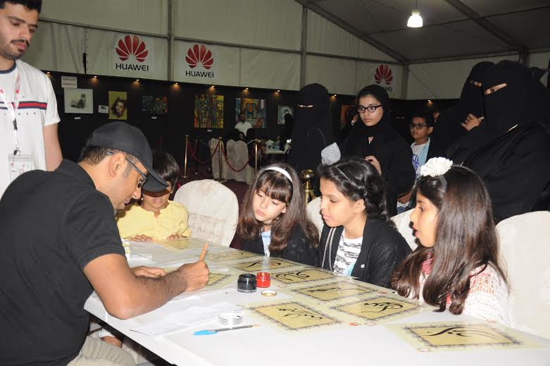 وعن مشاركته في مهرجان الطفل والعائلة اوضح انها جاءت بغرض الترفيه والتعليم في المهرجان واكتشاف ميول الطلاب من سن مبكرة والعمل مباشرة امام الطلاب بكتابة انواع الخطوط والتعريف بالطرق التي يكتب بها تلك الخطوط.ولفت انهم يقدمون كتابة تصل إلى 1000 اسم يوميا تعطى للزوار في الخيمة الثقافية الى جانب عروض لعدد من اللوحات للطلاب الذي يمتهنون الخط العربي والبعض الاخر كهواية.